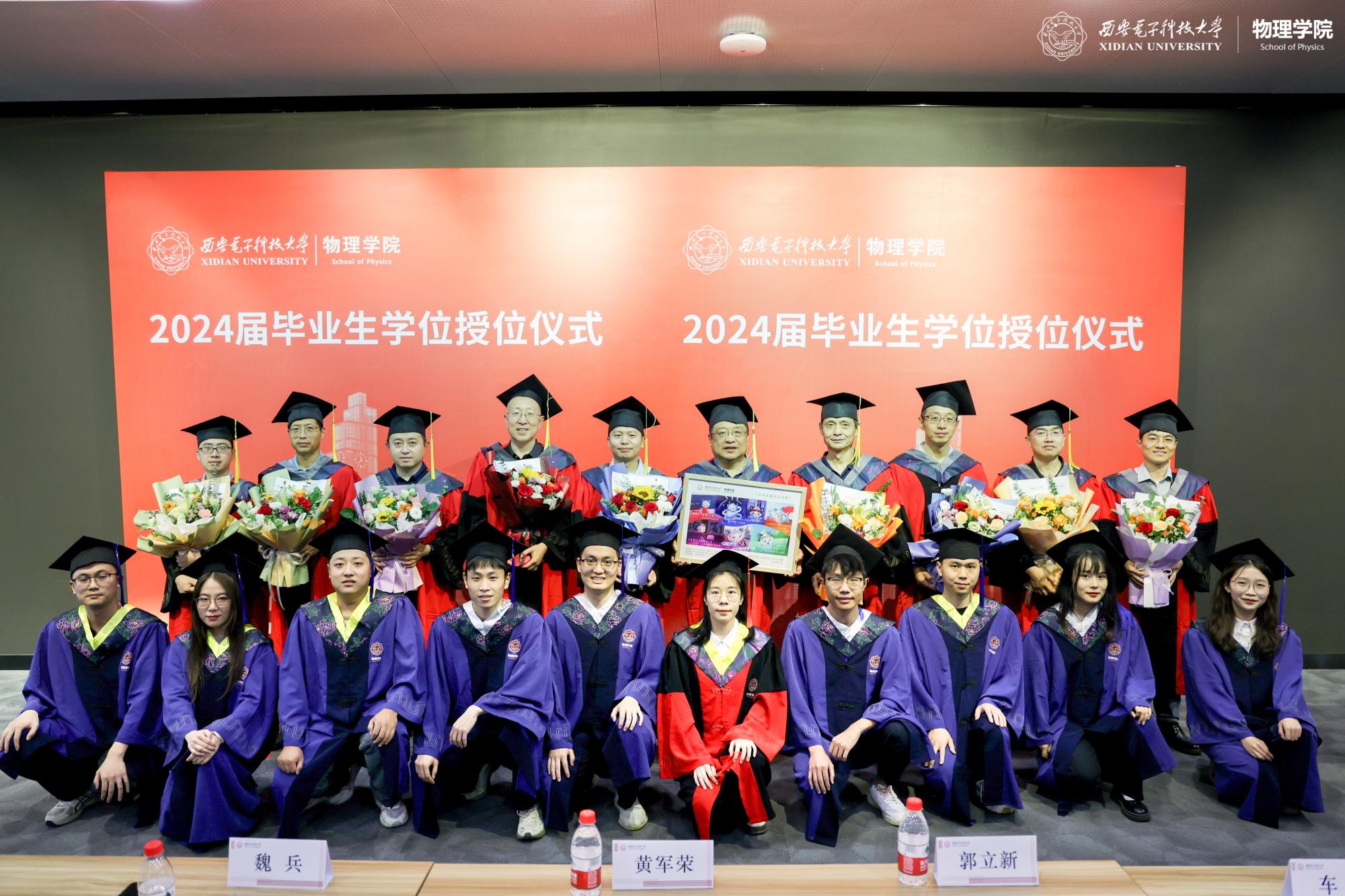随后,相关领导和老师为2024届的博士、硕士、本科毕业生逐一拨穗、颁发学位,并与他们合影留念。毕业生代表们向母校赠送了“全面成长画框”,并向教师献上了鲜花,以此表达他们对母校和学院的感激之情。