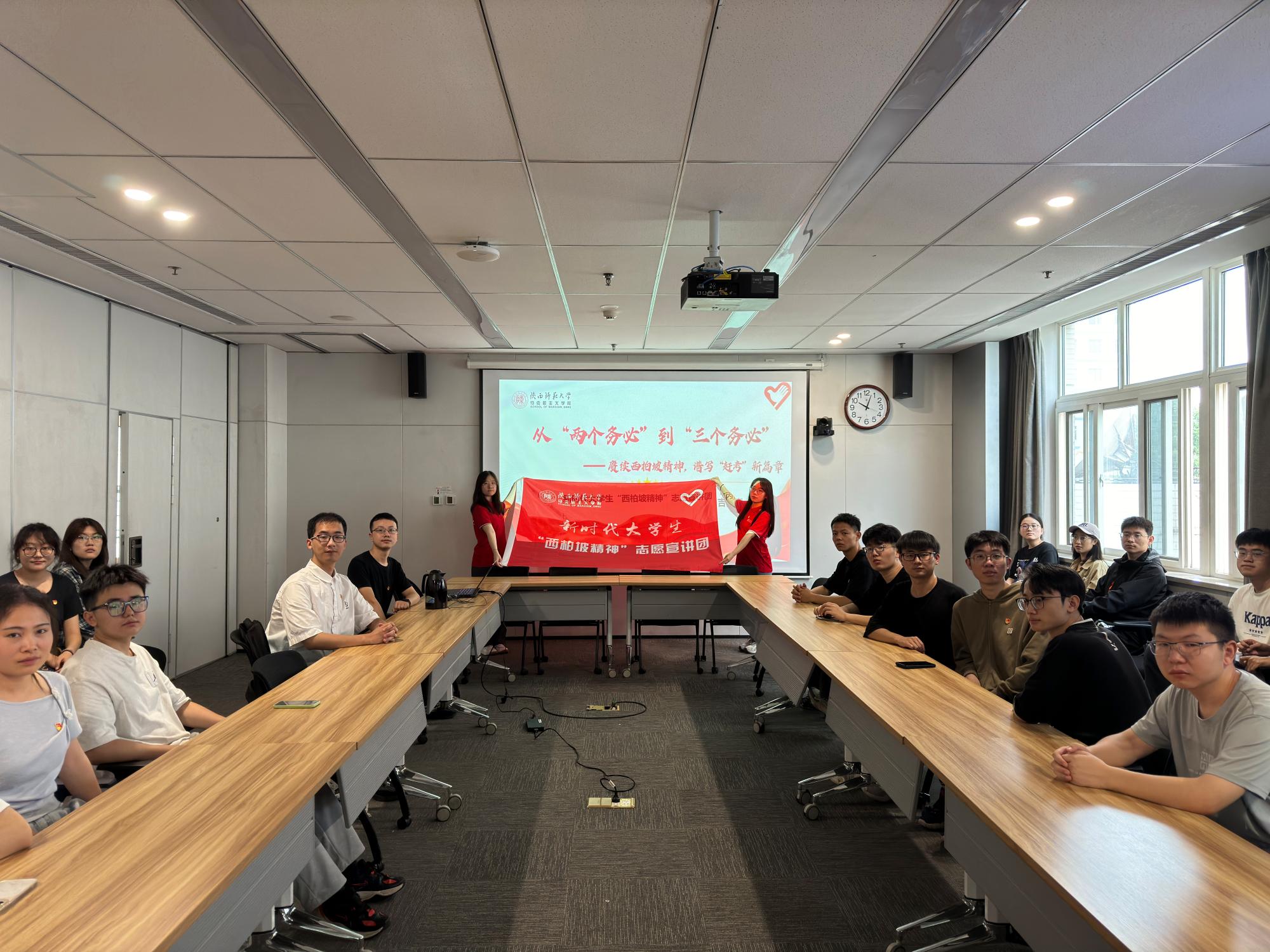 参观结束后,支部全体党员返回学校进行理论学习。宣讲员吉丙奇同学分享了西柏坡精神从“两个务必”进化到“三个务必”的理论发展历程。面临新时代、新挑战,为了谱写新时代中国特色社会主义更加绚丽的华章,我们党将“两个务必”拓展为“三个务必”,即——务必不忘初心、牢记使命;务必谦虚谨慎、艰苦奋斗;务必敢于斗争、善于斗争。从“两个务必”到“三个务必”,不变的是中国共产党人一以贯之、一脉相承的工作作风与主动革命精神。中国共产党人始终以“赶考”的清醒和坚定迈步向前,确保中国特色社会主义航船乘风破浪、行稳致远,使我们的红色江山世世代代传下去。