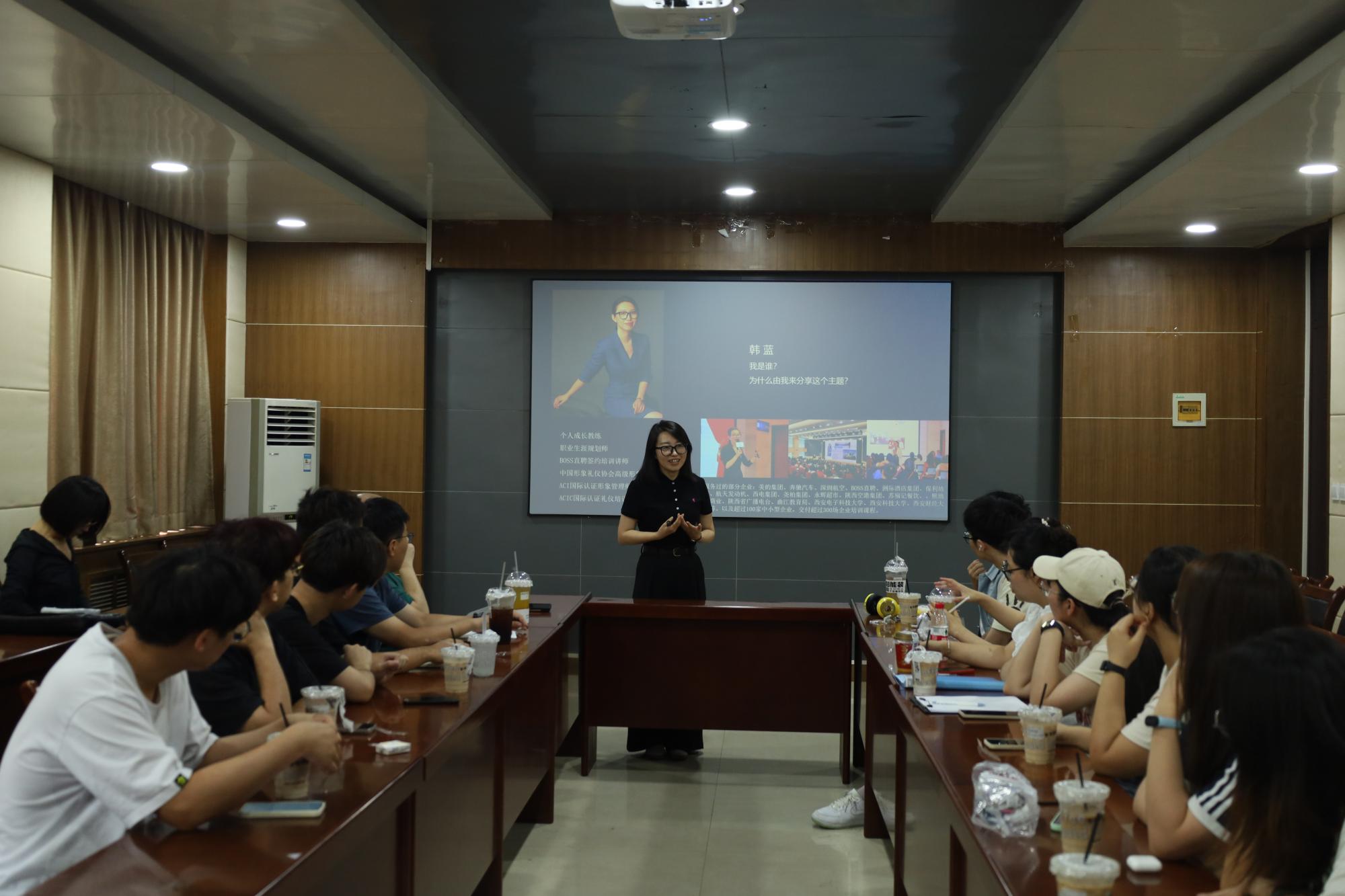 随后,韩老师向同学们讲解了简历中应如何凸显个人优势。强调要善于发现和展示自身的特长,简洁且突出重点的介绍曾做过的事件及成果,将自身实力置于核心位置,巧妙运用面试技巧,全方位打造自己的形象。