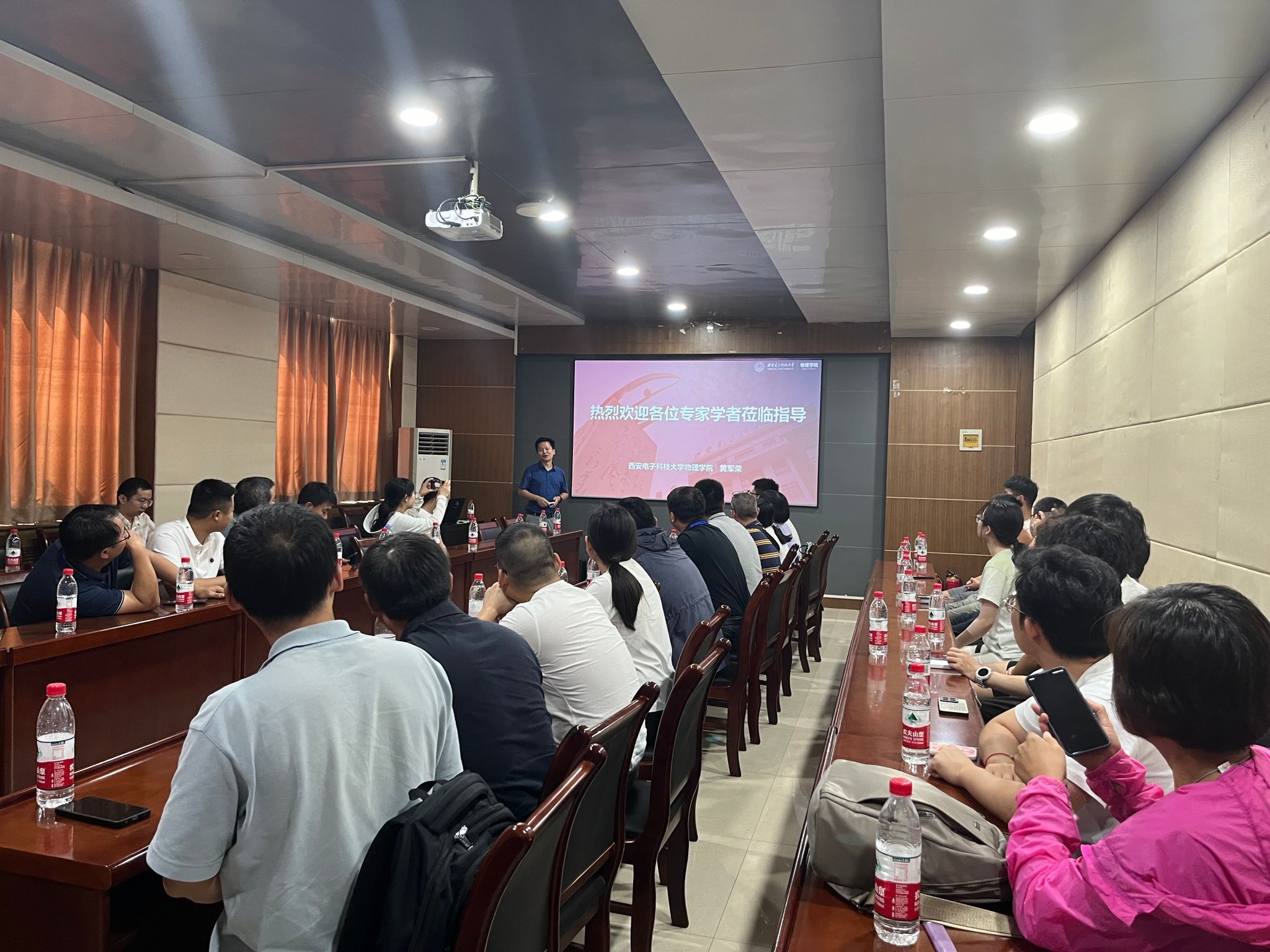 黄军荣对专家学者的到来表示热烈欢迎,他详细介绍了西电的历史沿革、人才培养、科学研究等基本概况,并对yl6809永利YL集团的机构设置、师资队伍、科研平台等方面进行了简要介绍。他欢迎各位参观人员能够与yl6809永利YL集团开展合作交流、推荐人才,不断深入光电探测领域科学研究,共同相关物理基础问题。