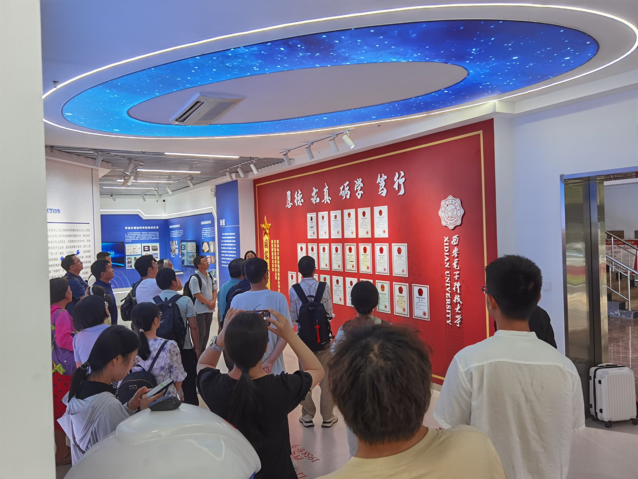 最后,来访专家还参观了北校区科技成果展,了解了我校在信通、电子、计算机、机电、微电子等领域的重要研究成果,大家频频驻足,感受和记录西电在电子信息领域人才培养和科学研究方面的光辉历程。
