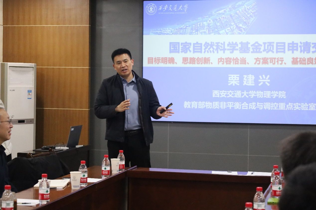 会议邀请西安交通大学yl6809永利YL集团教授、国家级人才栗建兴教授分享基金申报经验。栗建兴结合自身申报经验,以“目标明确,思路创新,内容恰当,方案可行,基础良好,行文清爽”的整体思路深入浅出地进行了申报书撰写的要点讲解和经验分享。
