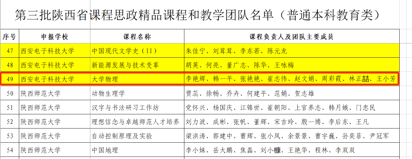 喜报!我院《大学物理》课程获批陕西省课程思政精品课程和教学团队