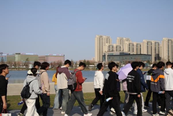 下午3时,志愿者们准时在图书馆楼下集合,手持垃圾清理工具,个个精神抖擞,满怀热忱。志愿者们分为四组,沿着“校园——城市绿道——未来之瞳公园环湖步道”路线开启了特别的志愿环保之行。