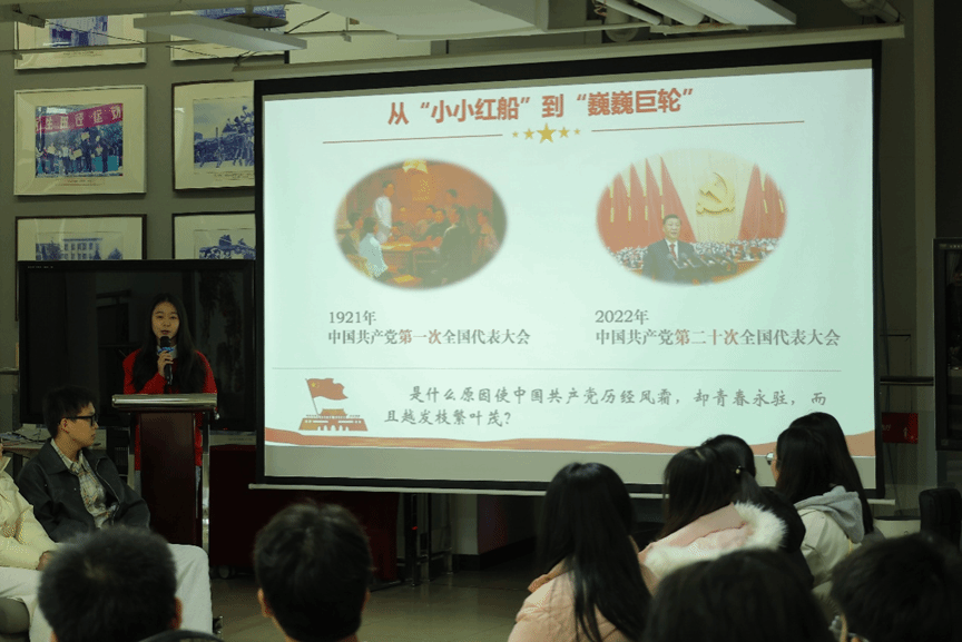 陕西师范大学新时代大学生理论宣讲团代表高子怡作主题分享,她围绕“初心使命注入青春活力”“红色精神激发青春力量”“自我革命永葆青春姿态”“守正创新彰显青春活力”四个维度,系统阐述了新时代青年传承红色基因、担当时代使命的实践路径。通过结合青年成长发展的实际案例,生动诠释了坚守初心与开拓创新的辩证关系,激励师生既要筑牢信仰根基,又要勇于创新突破,在服务国家发展的实践中贡献青春力量。