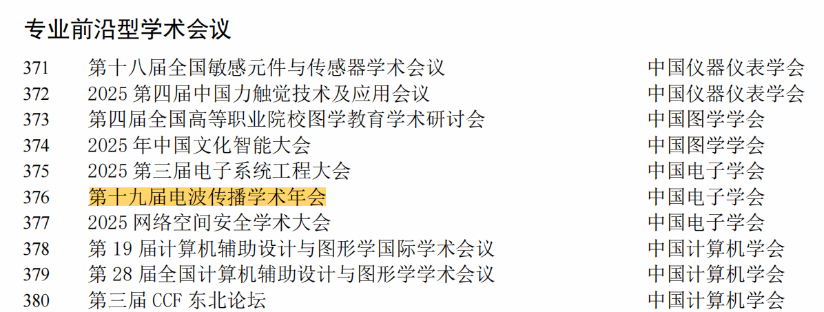(通讯员:姚娇)近日,中国科学技术协会正式发布《重要学术会议目录(2025)》,经中国电子学会推荐、专家评审、中国科协终审复核等严格流程筛选,由我校主办的第十九届电波传播学术年会成功入选。此次入选标志着该会议的学术质量、组织规范与战略价值获得了权威认可,也彰显了我校在电波传播领域的学科影响力与学术会议承办能力。