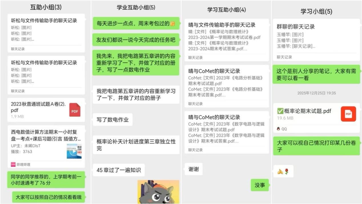 生活中,党员学伴以朋友、同学身份融入帮扶对象日常生活,通过结伴吃饭、自习、夜跑,面对面谈心交流,密切关注其心理状态,帮助被帮扶同学摆脱畏难抵触情绪,打破“心理困境—学业落后”的恶性循环。与此同时,党员学伴在知识讲解与资料整理中完善自身知识体系,在谈心交流中鞭策自我,实现了“帮扶他人、提升自我”的双向成长。
