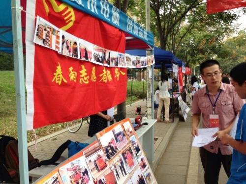 (通讯员张铭思)9月17日中午物理与光电工程学院团委读书社、辩论队和“春雨”志愿者在海棠餐厅南侧举办招新外场,团委副书记及社团负责人参与了此次招新活动。
