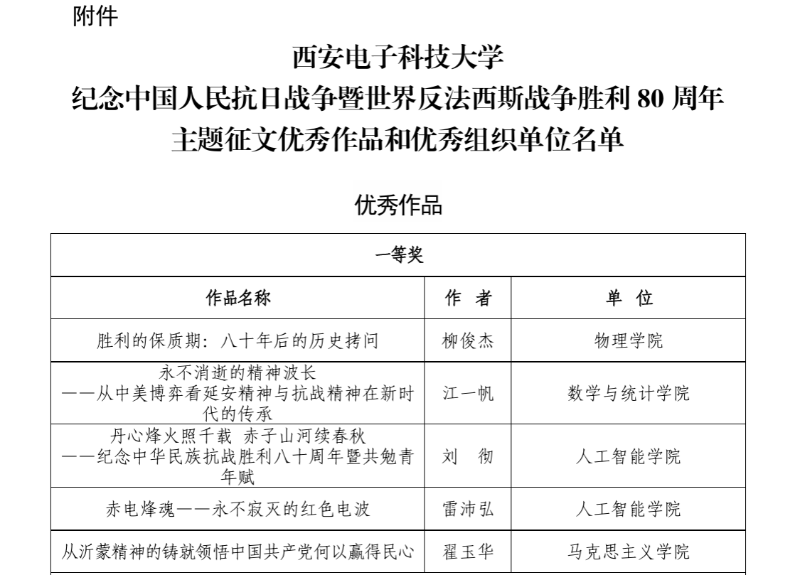 喜报!我院在纪念抗日战争暨世界反法西斯战争胜利80周年主题征文中获多项表彰