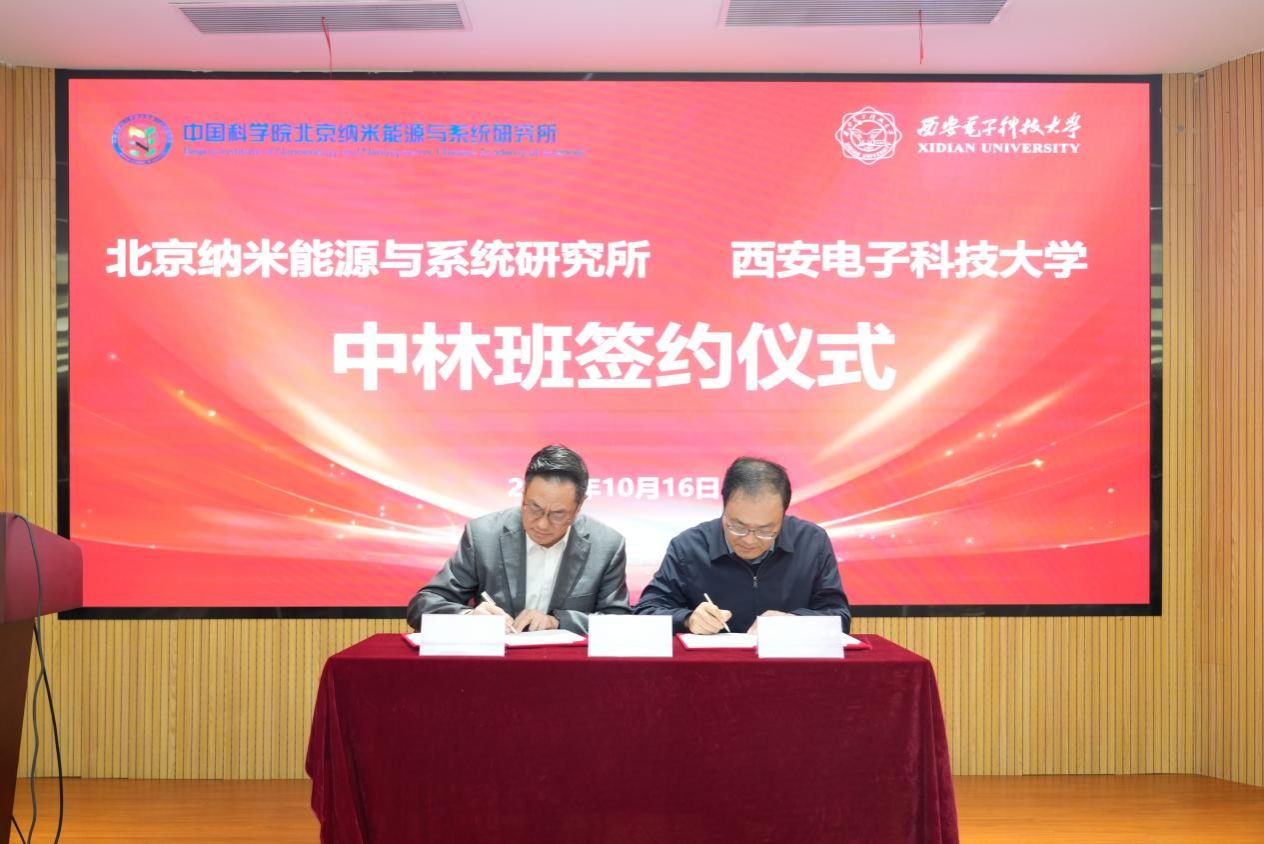 王中林与刘宏伟共同完成“中林班”签约仪式和“王中林原创科学奖”捐赠仪式。为支持母校一流建设、鼓励西电师生开展原始性研究,王中林院士将2023年获得的全球能源奖的奖金全部捐赠给母校。