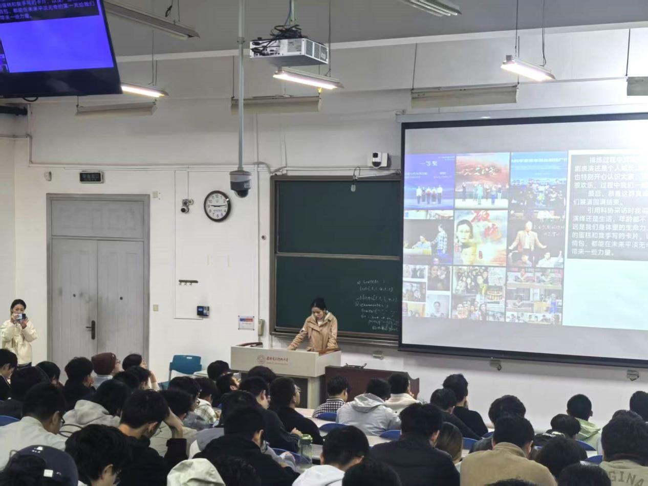 话剧《星河引航》实践团队通过艺术话剧的表现形式将先辈的科学家精神与教育家精神传承并弘扬。团队全体成员历经75个日夜的辛勤排练,最终精彩呈现了我院王一平教授和胡昌璧教授这对革命伉俪的风雨五十年故事,两人的长期坚守与传承感动了现场1500余人。分享会上,剧中胡昌璧教授扮演者岑华娜、韩晓娥教授扮演者吴启梦、王中林院士原型林森扮演者魏士朝逐一登台,通过展示排练与演出图片分享实践期间自己的所思所悟。