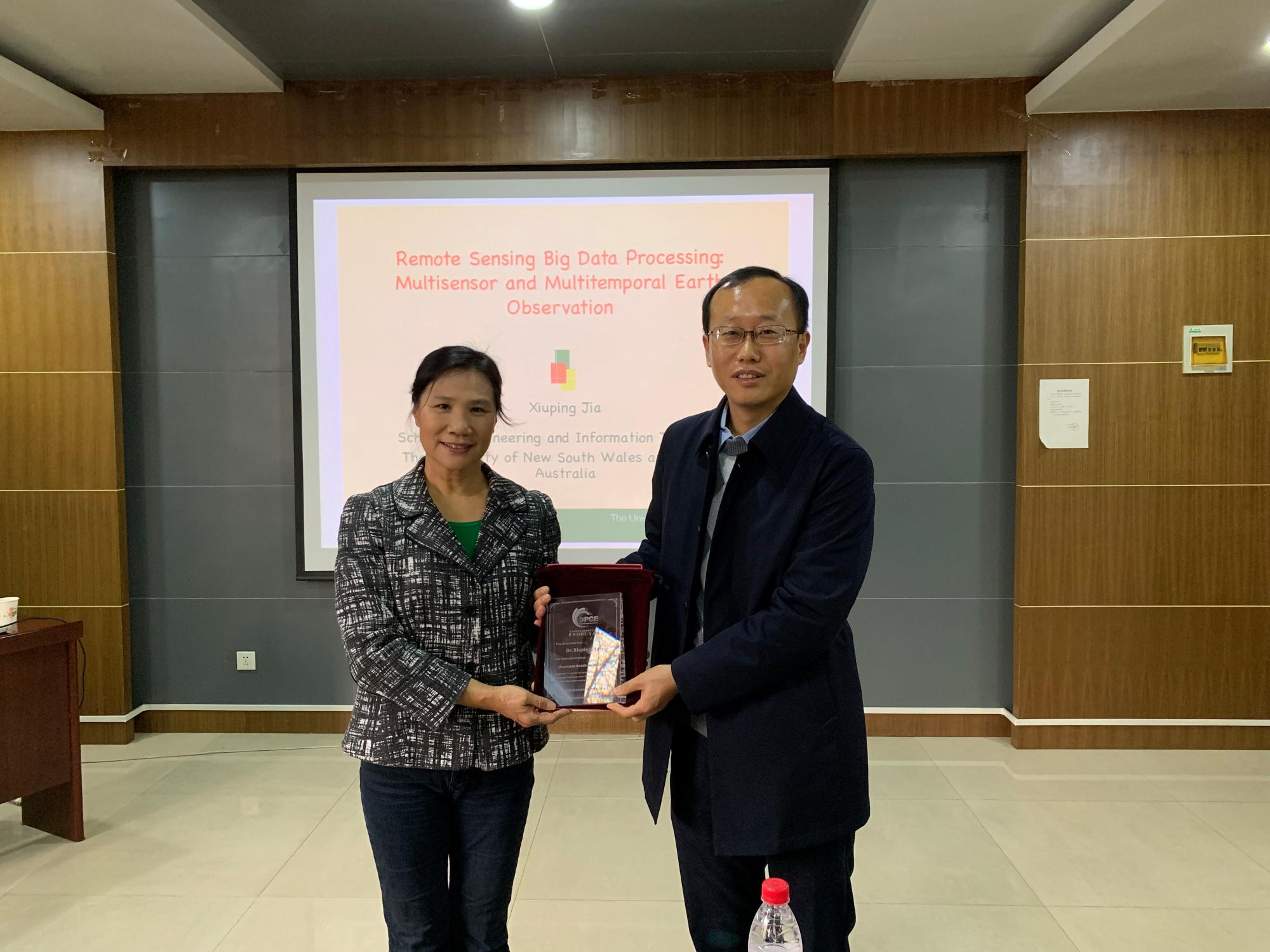 由邵晓鹏教授代表学院向Xiuping JIA博士颁发了水晶纪念证书。